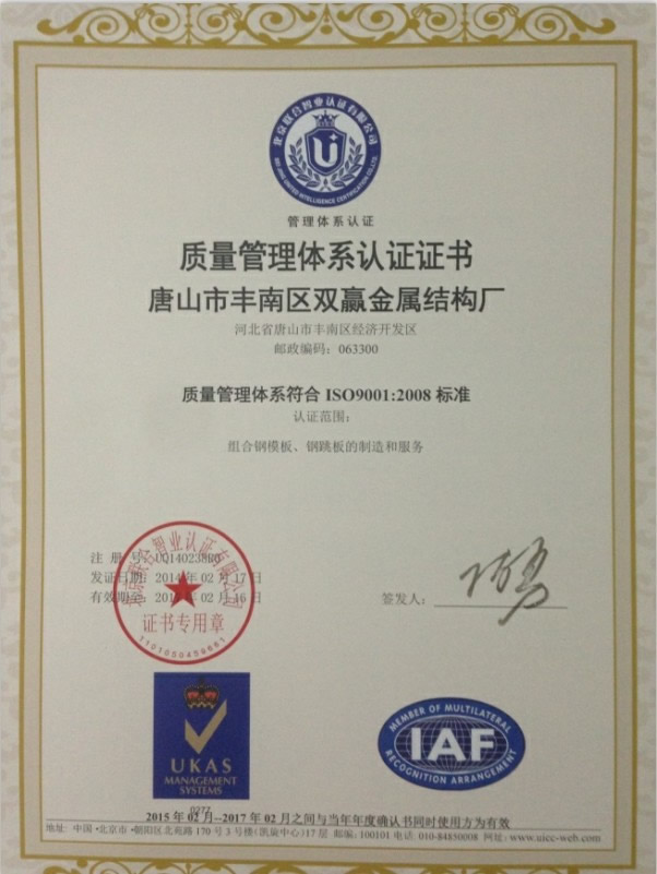 唐山創贏模板有限公司(原唐山豐南雙贏金屬結構廠)始建于一九九七年,是具規模實力的組合模板生產企業。公司技術力量雄厚,質量管理體系完善,與中鐵,中建,中交,中電,中水,中石油,中石化,河南水利工程局等大型施工企業有長期合作關系,產品覆蓋各省市自治區并出口新加坡,馬來西亞,委內瑞拉,印度,保加利亞等國,深受國內外客戶的一致好評。